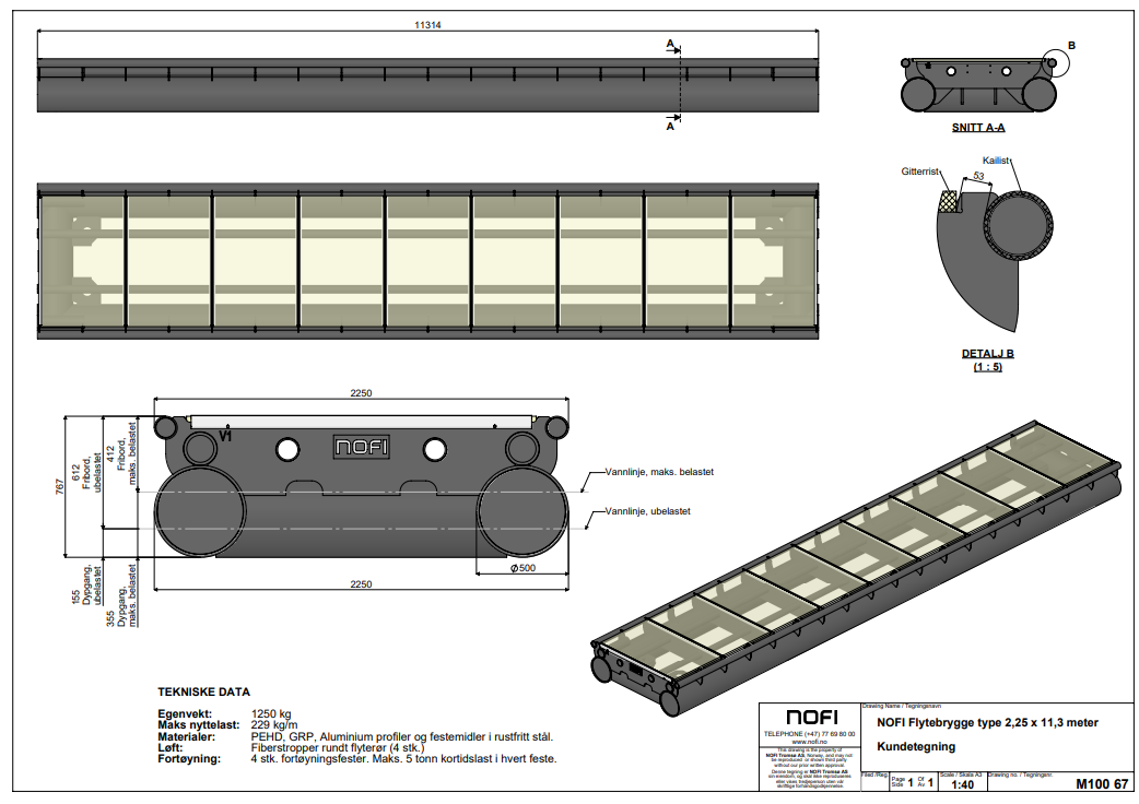Ansøgningen omfatter en arealtildeling til 2 separat ponton med landgang samt betonklods til fastgørelse er på ca. 18 meter og har afstand i mellem på ca. 20 meter.