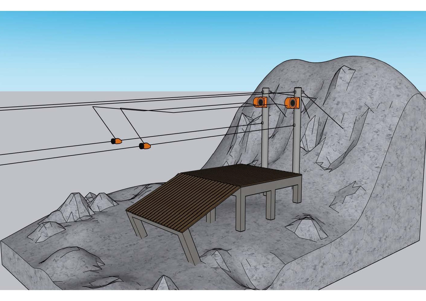 Der opsættes stolper ved start- og slutpunktet for at sikre en frihøjde på minimum 20-25 meter over terræn, så der fortsat er fri adgang og sikker færdsel for alle borgere i området.