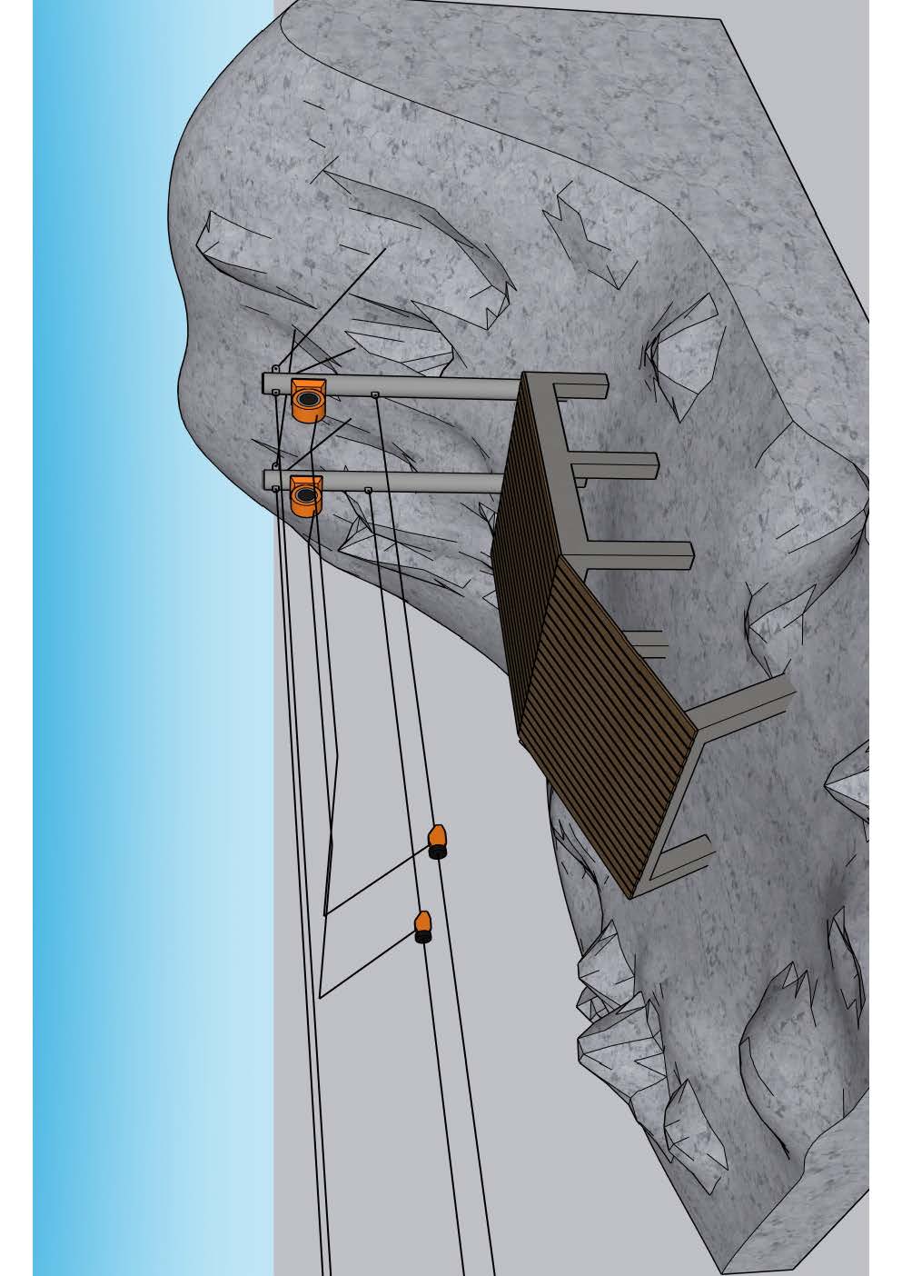 Startstedet etableres som en terrasseplatform på ca. 4 x 4 meter med en højde på op til 40 cm, samt et mindre endeplatform / slutsted. Slutstedet udgøres af et sæt stålstolper på op til 6 meter med en terrasse på ca. 4 x 4 meter i en højde på ca. 3,5 meter fra terræn.