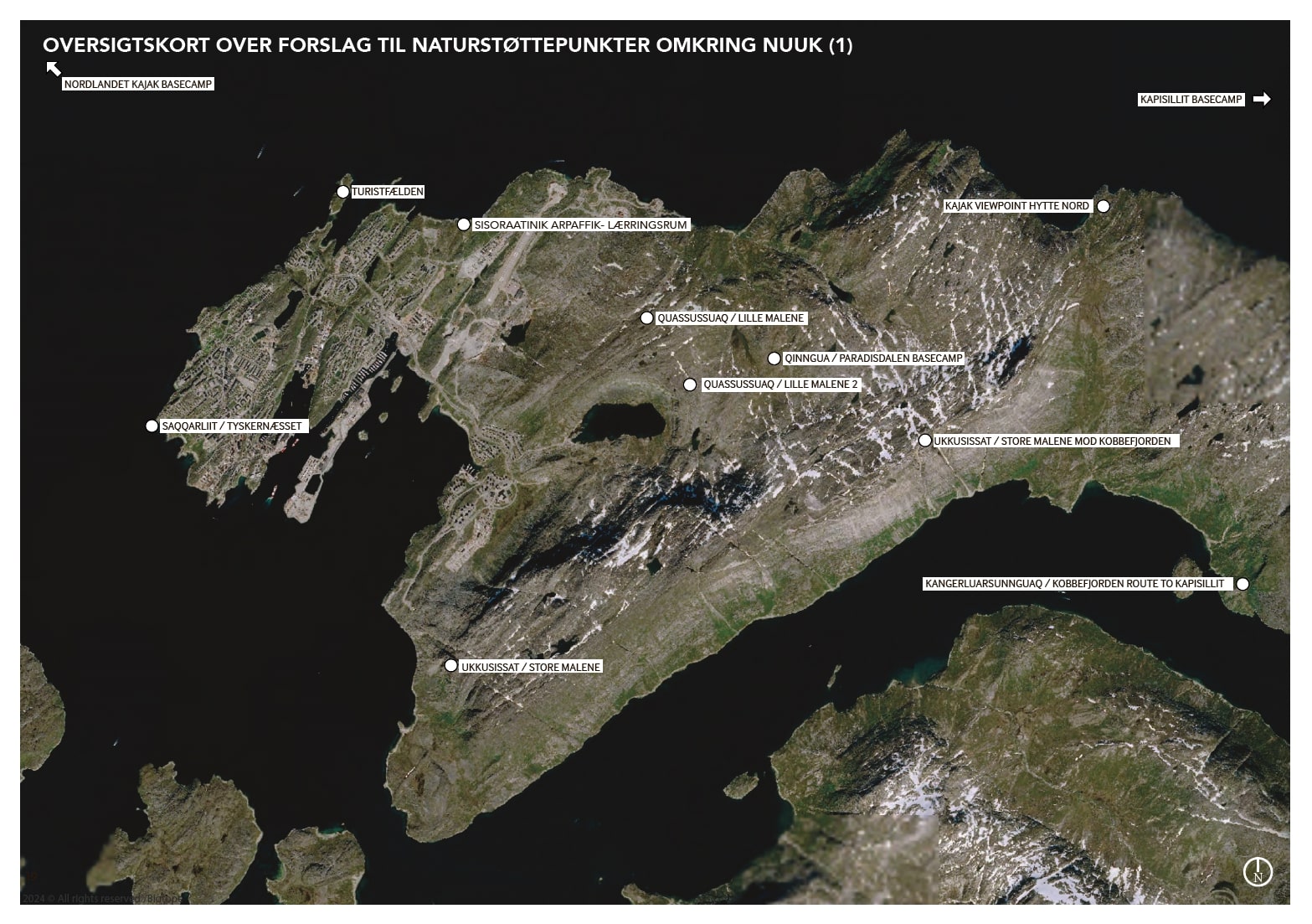 Oqquiffissap qalisap sumiiffigisassaa illoqarfimmut qaninnerpaasussaq Saqqarlerniittoq, borgmesterip danskillu aallartitaasa ullumi alakkarpaat. Oqquiffissaq taanna timmissanik isiginnaarnermik nuannarisalinnuunerusoq iluaqutaassaaq. Allat amerlanerpaat Nuup eqqaaniunerusoq inissisimassapput. Marluk Quassussuarmiissapput, marlullu Ukkusissamiissallutik. Ataaseq Nuup Akianiissaaq, allalu ataaseq Kapisilinni Kangersunerup tungaanut isikkiveqassalluni.